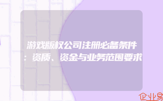 - 游戏版权公司注册必备条件:资质、资金与业务范围要求