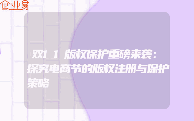 - 双11版权保护重磅来袭:探究电商节的版权注册与保护策略