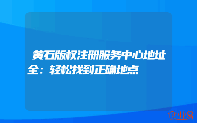 - 黄石版权注册服务中心地址全:轻松找到正确地点