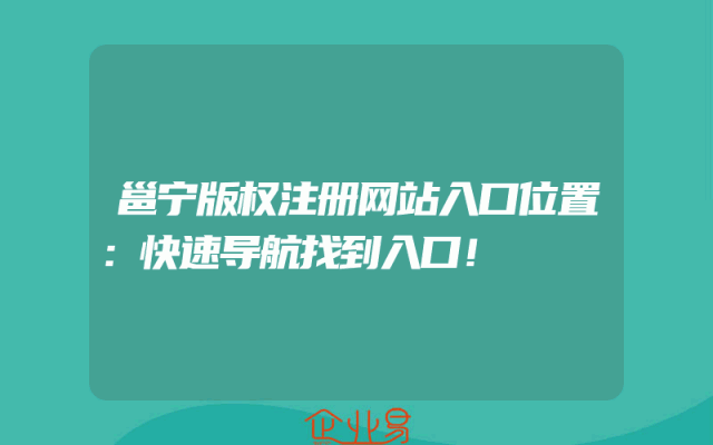 - 邕宁版权注册网站入口位置:快速导航找到入口!