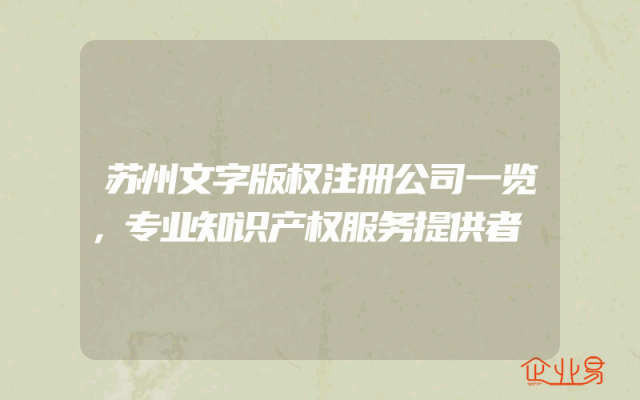 - 苏州文字版权注册公司一览,专业知识产权服务提供者
