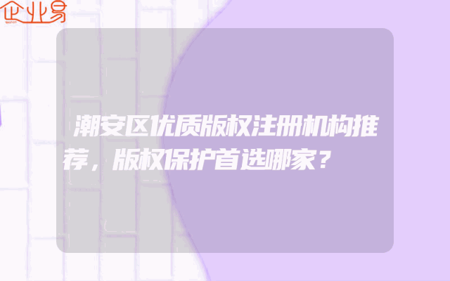 - 潮安区优质版权注册机构推荐,版权保护首选哪家?