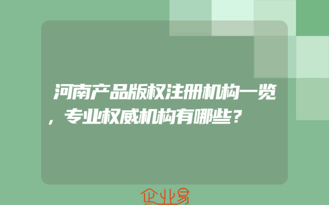 - 河南产品版权注册机构一览,专业权威机构有哪些?