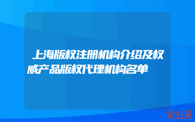 - 上海版权注册机构介绍及权威产品版权代理机构名单