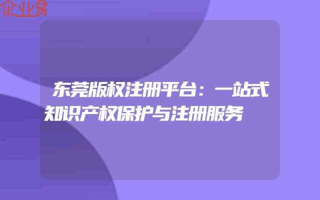 - 东莞版权注册平台:一站式知识产权保护与注册服务