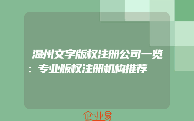 - 温州文字版权注册公司一览:专业版权注册机构推荐