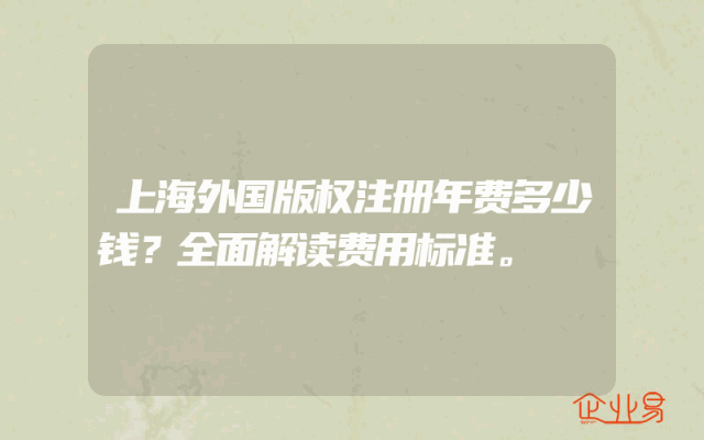 - 上海外国版权注册年费多少钱?全面解读费用标准。