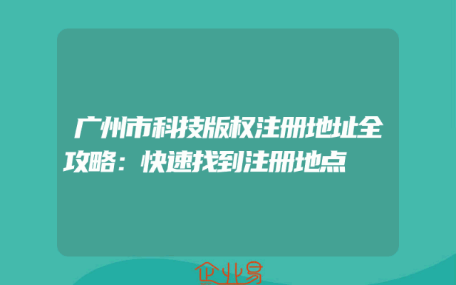 - 广州市科技版权注册地址全攻略:快速找到注册地点