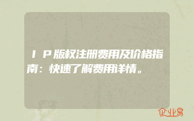 - IP版权注册费用及价格指南:快速了解费用详情。