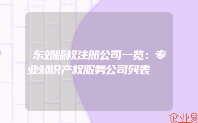 - 东郊版权注册公司一览:专业知识产权服务公司列表