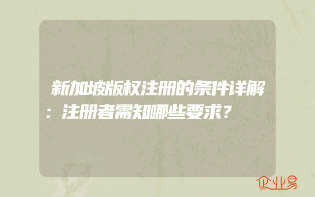 - 新加坡版权注册的条件详解:注册者需知哪些要求?