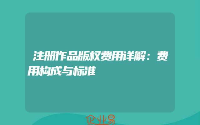 - 好的,下面是一篇关于注册作品版权费用的详解文章:注册作品版权费用详解:费用构成与标准解析在当今知识产权日益受到重视的时代,作品版权注册成为保护创作者权益的重要手段。关于作品版权注册,费用问题是众多创作者关注的焦点。本文将从多个角度详细解析注
