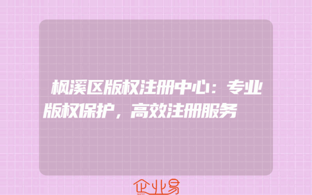 - 枫溪区版权注册中心:专业版权保护,高效注册服务