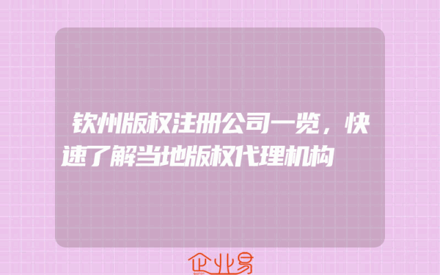 - 钦州版权注册公司一览,快速了解当地版权代理机构