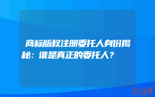 - 商标版权注册委托人身份揭秘:谁是真正的委托人?