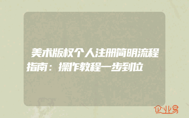 - 美术版权个人注册简明流程指南:操作教程一步到位