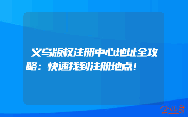 - 义乌版权注册中心地址全攻略:快速找到注册地点!