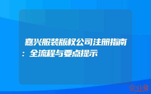 - 嘉兴服装版权公司注册指南:全流程与要点提示