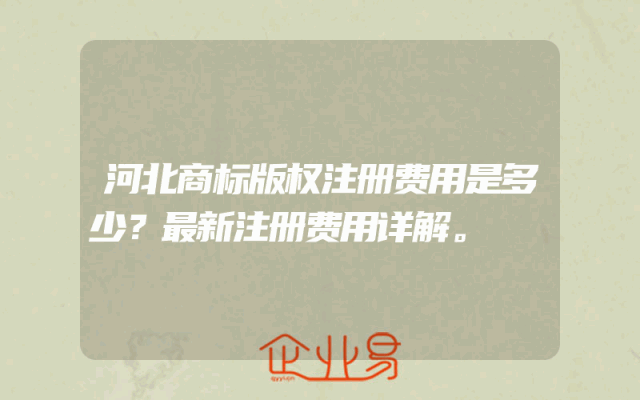 - 河北商标版权注册费用是多少?最新注册费用详解。