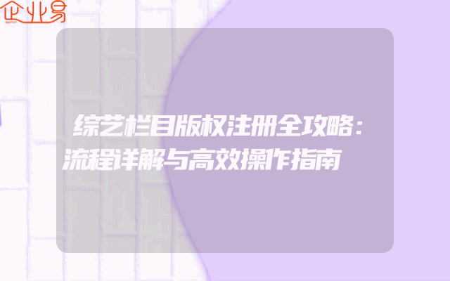 - 综艺栏目版权注册全攻略:流程详解与高效操作指南一、了解综艺栏目版权的重要性在数字化时代,版权保护尤为重要,特别是对于综艺栏目来说。综艺栏目包含了创意、编排、音乐、表演等多种元素,具有很高的商业价