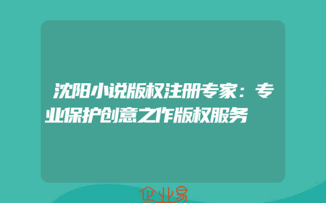 - 沈阳小说版权注册专家:专业保护创意之作版权服务