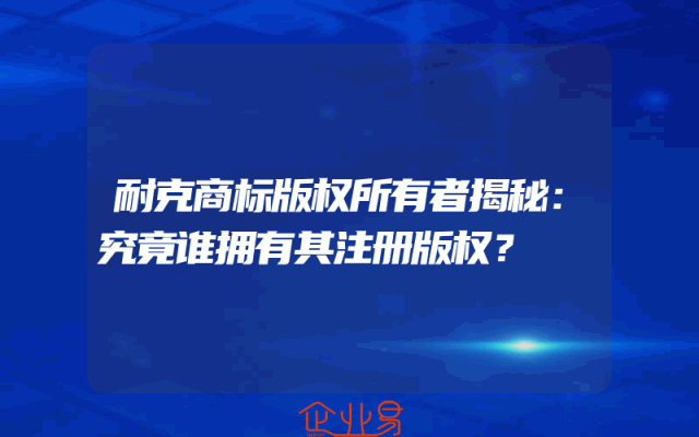 - 耐克商标版权所有者揭秘:究竟谁拥有其注册版权?