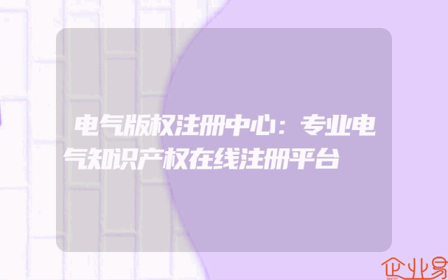 - 电气版权注册中心:专业电气知识产权在线注册平台