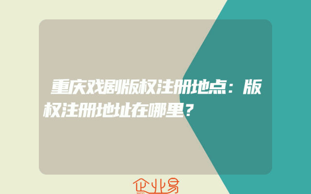 - 重庆戏剧版权注册地点:版权注册地址在哪里?