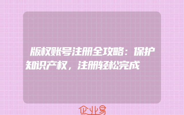 - 版权账号注册全攻略:保护知识产权,注册轻松完成