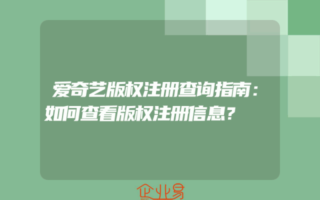 - 爱奇艺版权注册查询指南:如何查看版权注册信息?
