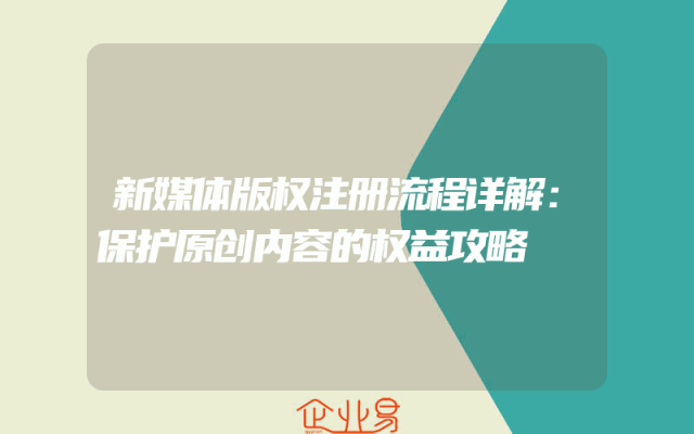 - 新媒体版权注册流程详解:保护原创内容的权益攻略
