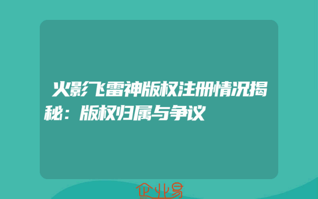 - 火影飞雷神版权注册情况揭秘:版权归属与争议