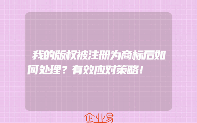 - 我的版权被注册为商标后如何处理?有效应对策略!