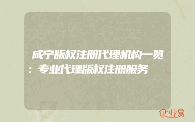 - 咸宁版权注册代理机构一览:专业代理版权注册服务