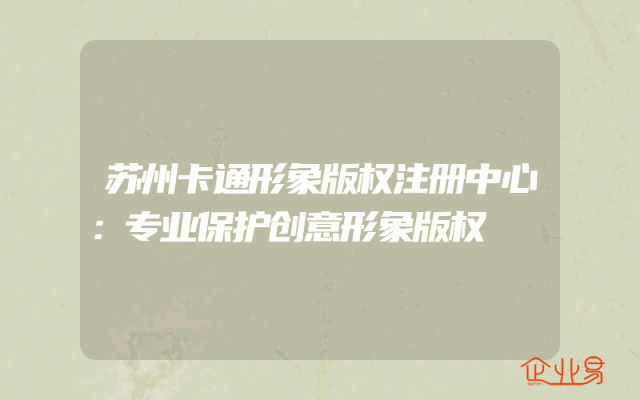 - 苏州卡通形象版权注册中心:专业保护创意形象版权