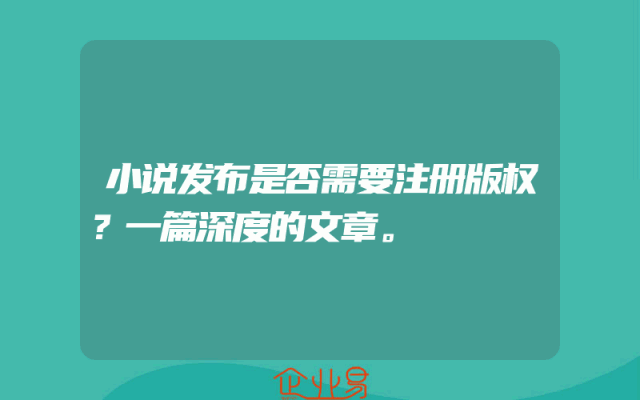 - 小说发布是否需要注册版权?一篇深度的文章。