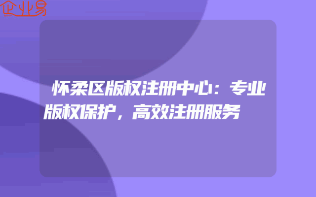 - 怀柔区版权注册中心:专业版权保护,高效注册服务