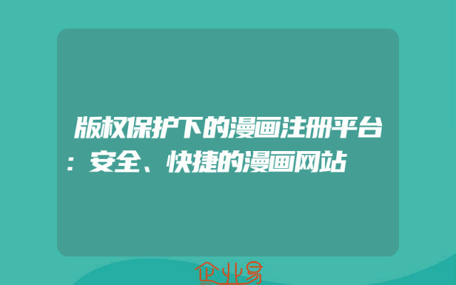 - 版权保护下的漫画注册平台:安全、快捷的漫画网站