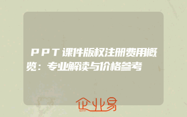 - PPT课件版权注册费用概览:专业解读与价格参考