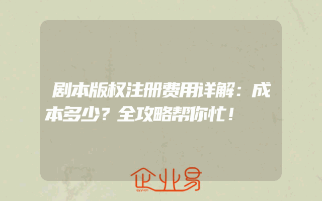 - 剧本版权注册费用详解:成本多少?全攻略帮你忙!