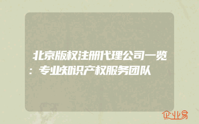 - 北京版权注册代理公司一览:专业知识产权服务团队