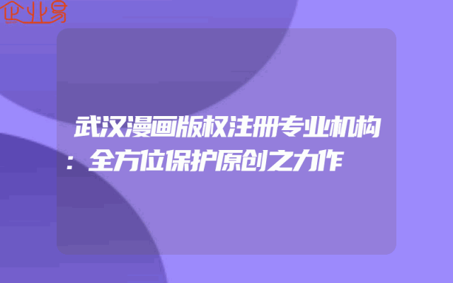 - 武汉漫画版权注册专业机构:全方位保护原创之力作