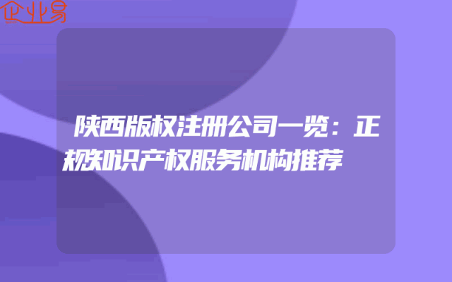 - 陕西版权注册公司一览:正规知识产权服务机构推荐
