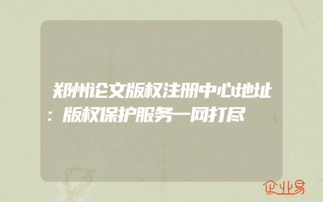 - 郑州论文版权注册中心地址:版权保护服务一网打尽