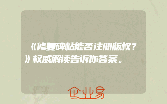 - 《修复碑帖能否注册版权?》权威解读告诉你答案。