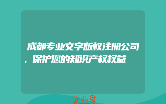 - 成都专业文字版权注册公司,保护您的知识产权权益