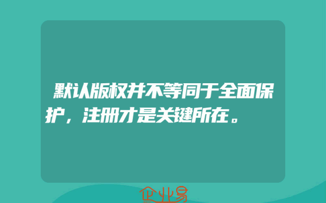 - 默认版权并不等同于全面保护,注册才是关键所在。