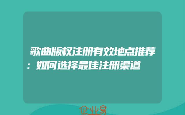 - 歌曲版权注册有效地点推荐:如何选择最佳注册渠道