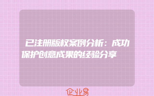 - 已注册版权案例分析:成功保护创意成果的经验分享