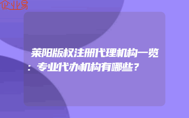 - 莱阳版权注册代理机构一览:专业代办机构有哪些?